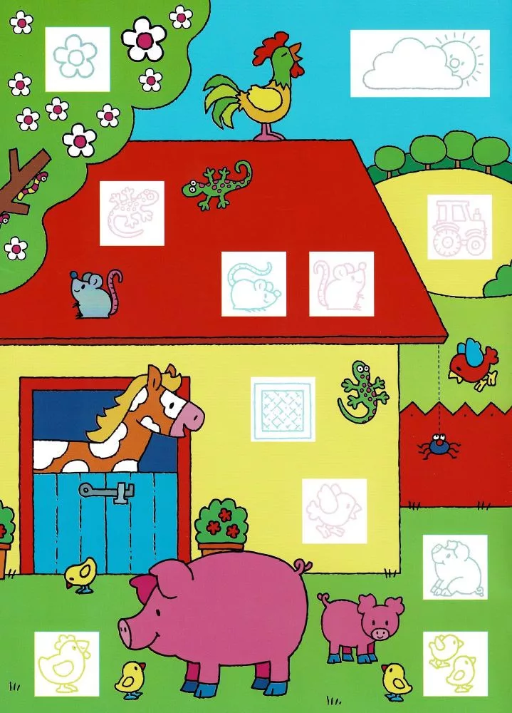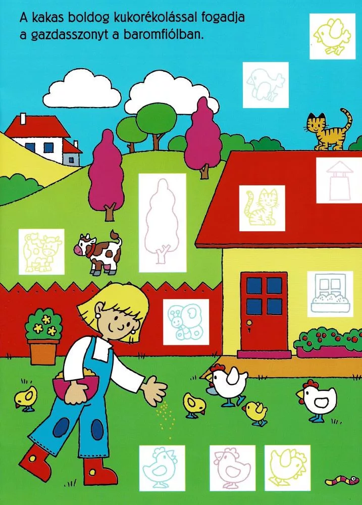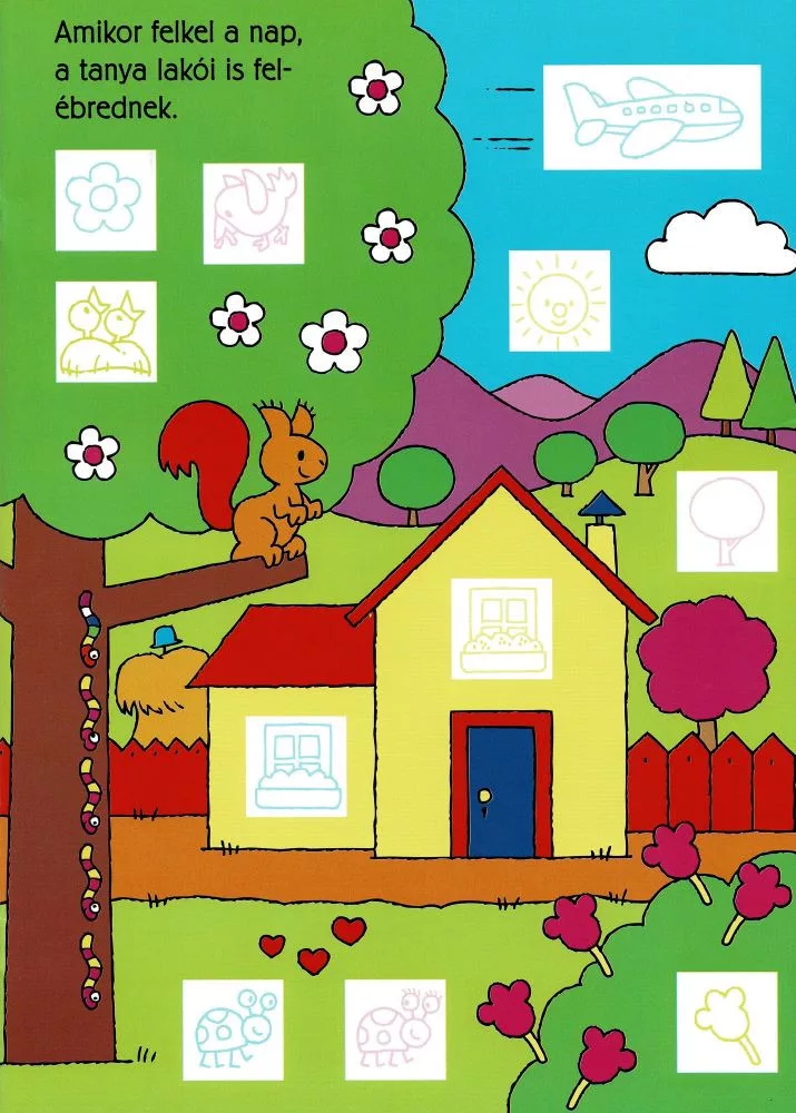 Ismerd meg a tanyát és a várost! Ragaszd be a 96 matricát, így lesz teljes a kép, és végigkövetheted a falusi élet legjellemzőbb jeleneteit.