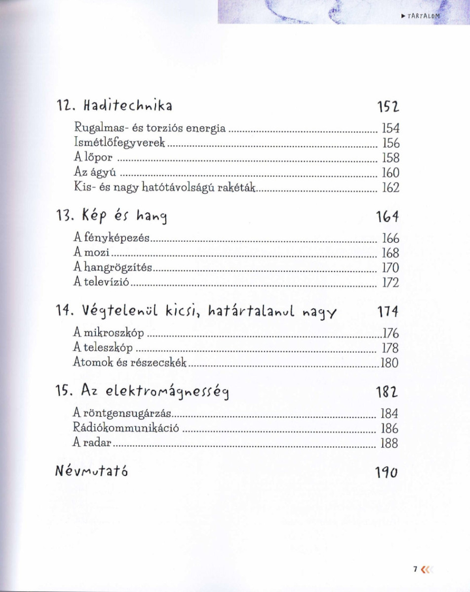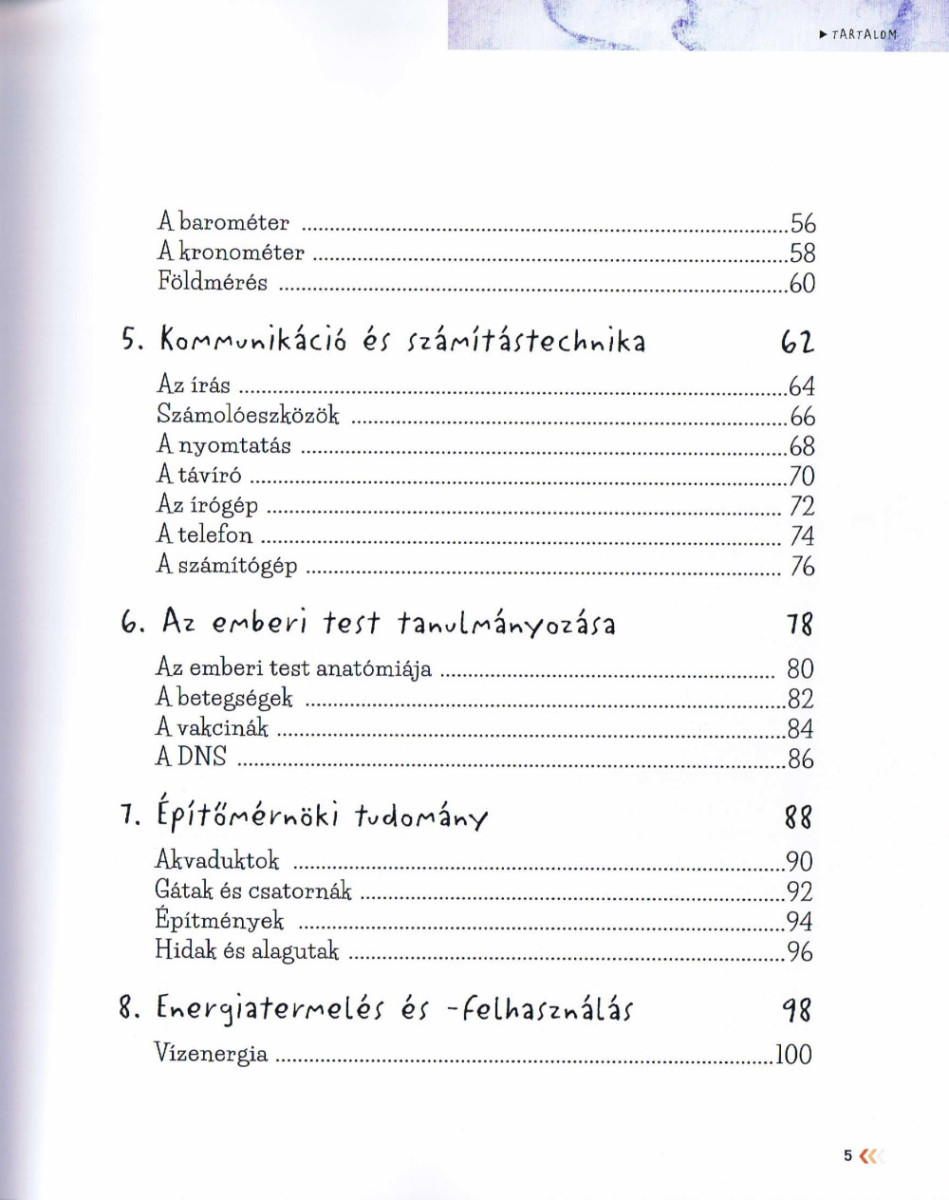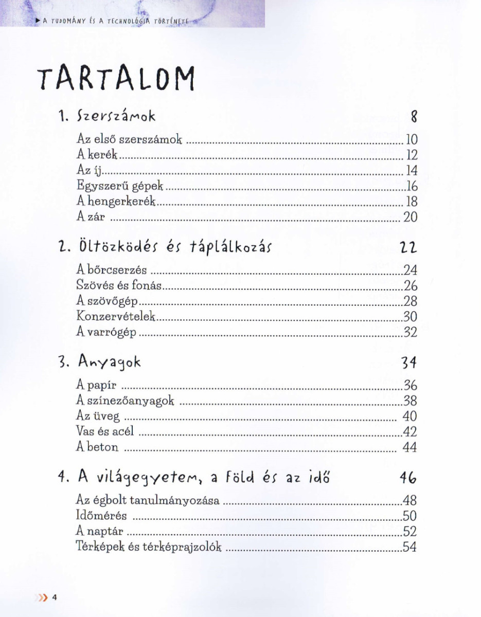 Az ember először fegyvereket és szerszámokat készített, és ebből alakult ki a tudomány, amely továbbfejlődve technológiává vált. Az olyan találmányok és felfedezések, mint a kerék vagy a repülő, a nyomda vagy a védőoltások, a DNS vagy az elektromágnesesség nagy segítségére volt az emberiségnek a mindennapi életében. Mindezek olyan nagyszerű eredményekhez vezettek el, mint a hangsebesség elérése vagy a műholdak űrbe küldése. Ebben a gazdagon illusztrált könyvben könnyen megérthető a magyarázatokkal, szerteágazó áttekintéssel találkozhattok a technológia fejlődéséről, valamint az emberiség kivételes találmányairól és felfedezéseiről