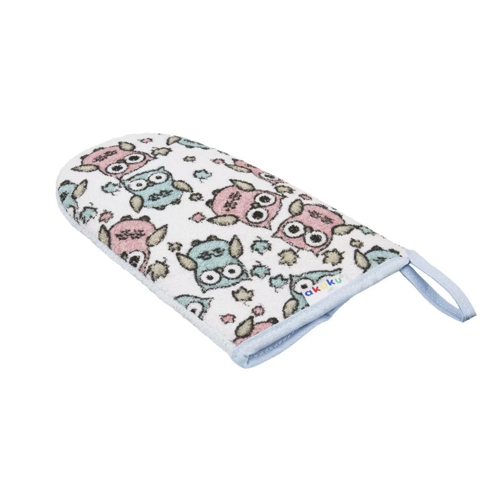 Az AKUKU termékcsalád részeként a bagolymintás mosókesztyű tökéletes választás a legkisebbek mindennapi tisztálkodásához. A kesztyű puha frottír anyagból készült, amely kíméletesen tisztítja és ápolja a baba bőrét, így megelőzve az irritációt és a bőrszárazságot.