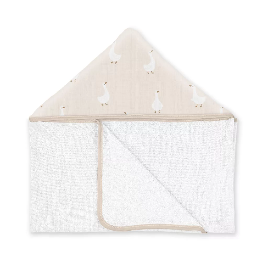 • A törölköző kapucnival rendelkezik, amely a baba fejére helyezhető, így melegséget és kényelmet biztosít száradás közben.