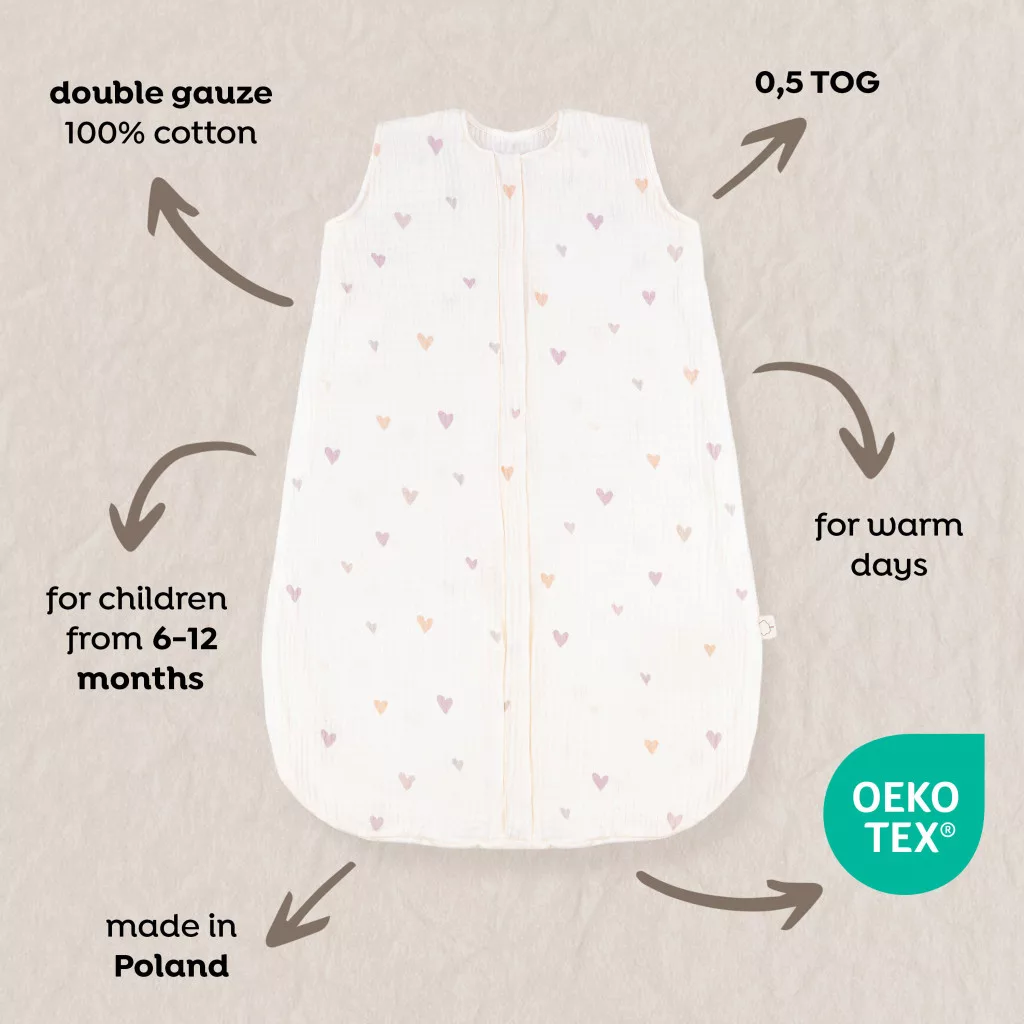 - A könnyű és lélegző pamut muszlin megfelelő hőszigetelést biztosít, hogy megakadályozza a baba túlmelegedését a nyári éjszakákon.