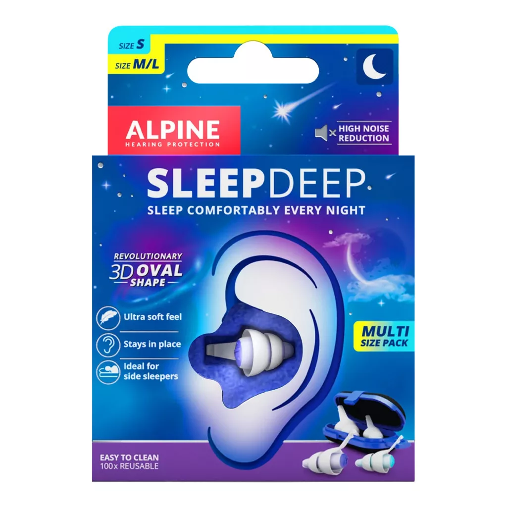 A füldugó egyedülálló ovális alakja követi a hallójárat formáját, így a füldugók nem esnek ki és nem okoznak kellemetlen érzést oldalt fekve sem. Ezenkívül a SleepDeep hangelnyelő gélt tartalmaz, mely hatékonyan csillapítja a környezeti zajokat és a horkolást. A SleepDeep füldugók általános csillapítása (SNR) 27 dB. Ez azt jelenti, hogy a legtöbb környezeti zajt csillapítja. Így egész éjjel nyugodtan alhatunk.