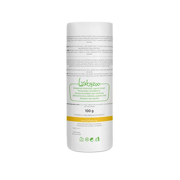 Nyomjuk le a kupak tetejét a nyíllal megjelölt helyen. A hintőport szórjuk a tenyerünkbe, és így juttassuk azt a baba bőrére. Használat után a kupakot zárjuk le. Kerüljük el, hogy a baba a port belélegezze, vagy a szájába, orrába, szemébe jusson! A hintőport csak külsőleg használjuk!