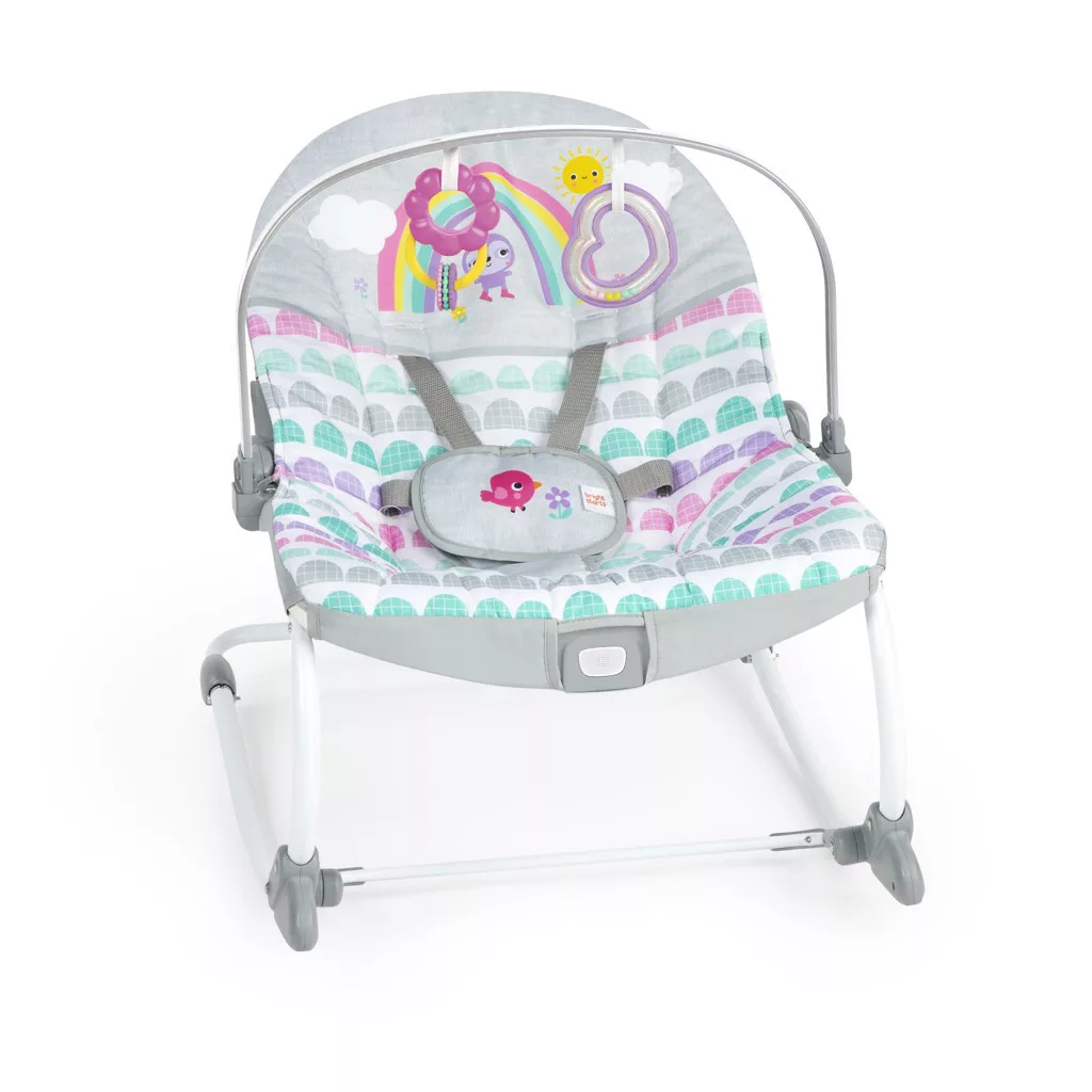 A Bright Starts Rosy Rainbow 2az1-ben hintaszékkel megkönnyíted mindennapjaidat. A többfunkciós pihenőszék együtt nő csemetéddel. A székben gyermeked egyszerre tud pihenni és játszani a játékokkal.