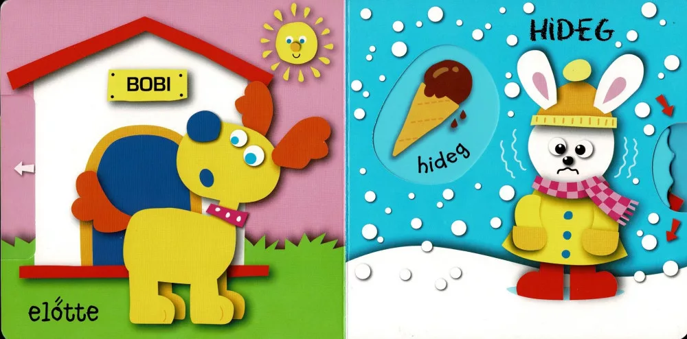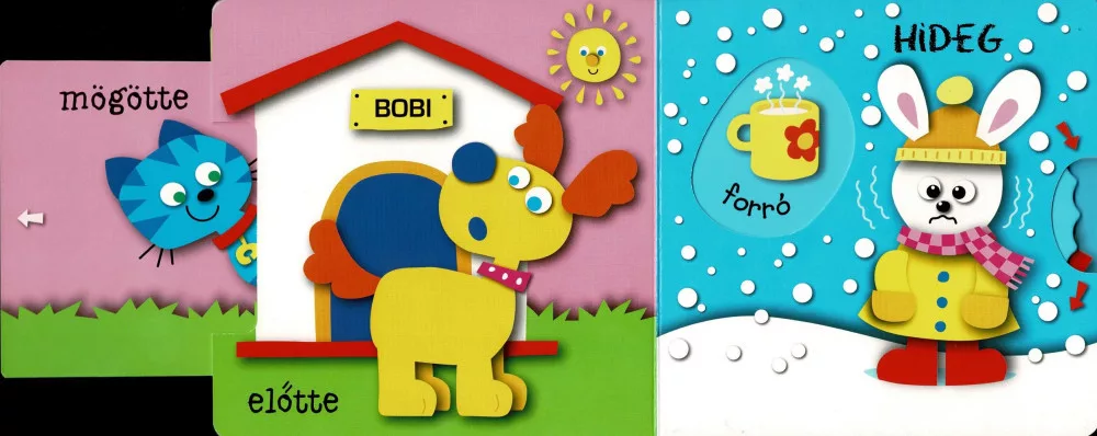 A Bújócska ... az ellentétekkel egy bájos és interaktív lapozókönyv, amelyet a legkisebbek számára terveztek. A könyv színes és vonzó illusztrációi mellett különféle mozgatható elemekkel, mint például fülekkel és kerekekkel, ösztönzi a gyerekeket az aktív felfedezésre. Az egyes oldalak mögött rejtőző tárgyak és állatok nemcsak szórakoztatóak, hanem oktató jellegűek is, hiszen a gyerekek játék közben ismerkednek meg az ellentétek fogalmával, mint például kicsi-nagy, boldog-szomorú, gyors-lassú. Ez a könyv nemcsak a szókincsüket bővíti, hanem a finommotoros készségeiket is fejleszti, ahogy a kicsik mozgatják a különböző elemeket.
