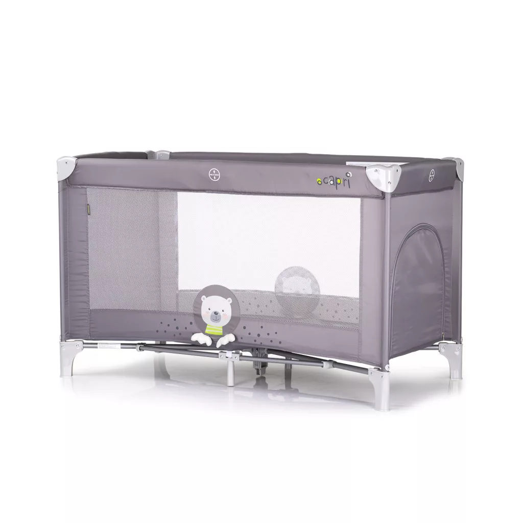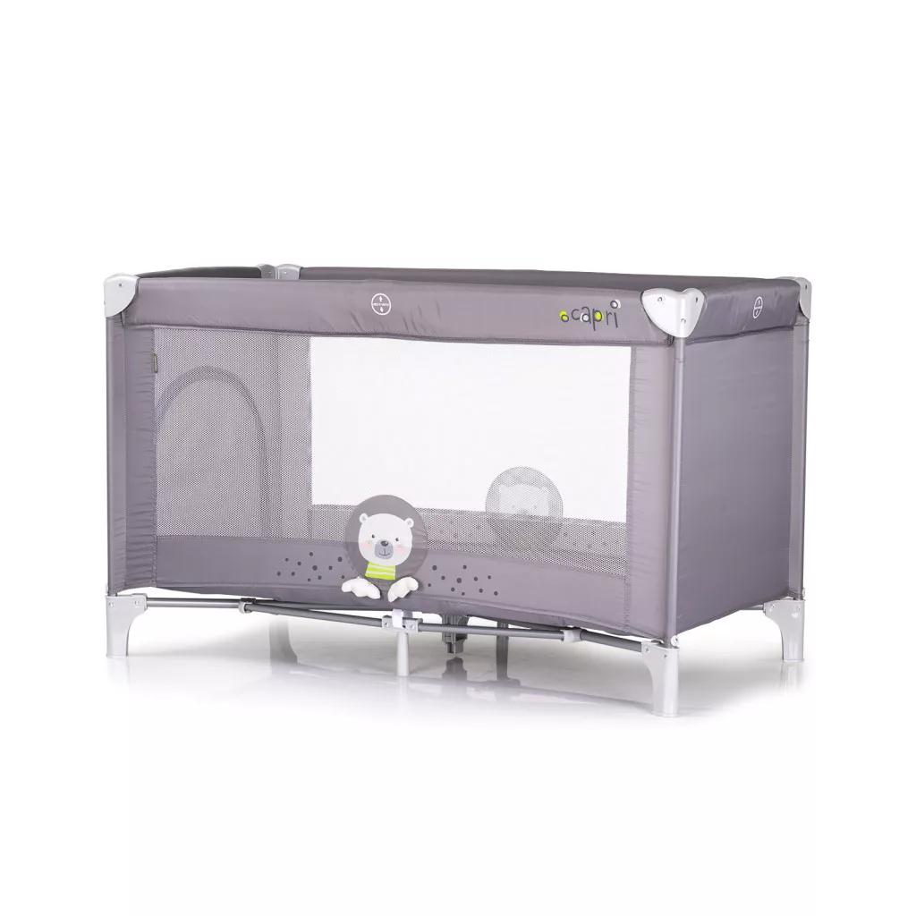 Praktikus és kényelmes utazóágy a kicsiknek, kényelmes matraccal, kellemes színekkel tarkítva.