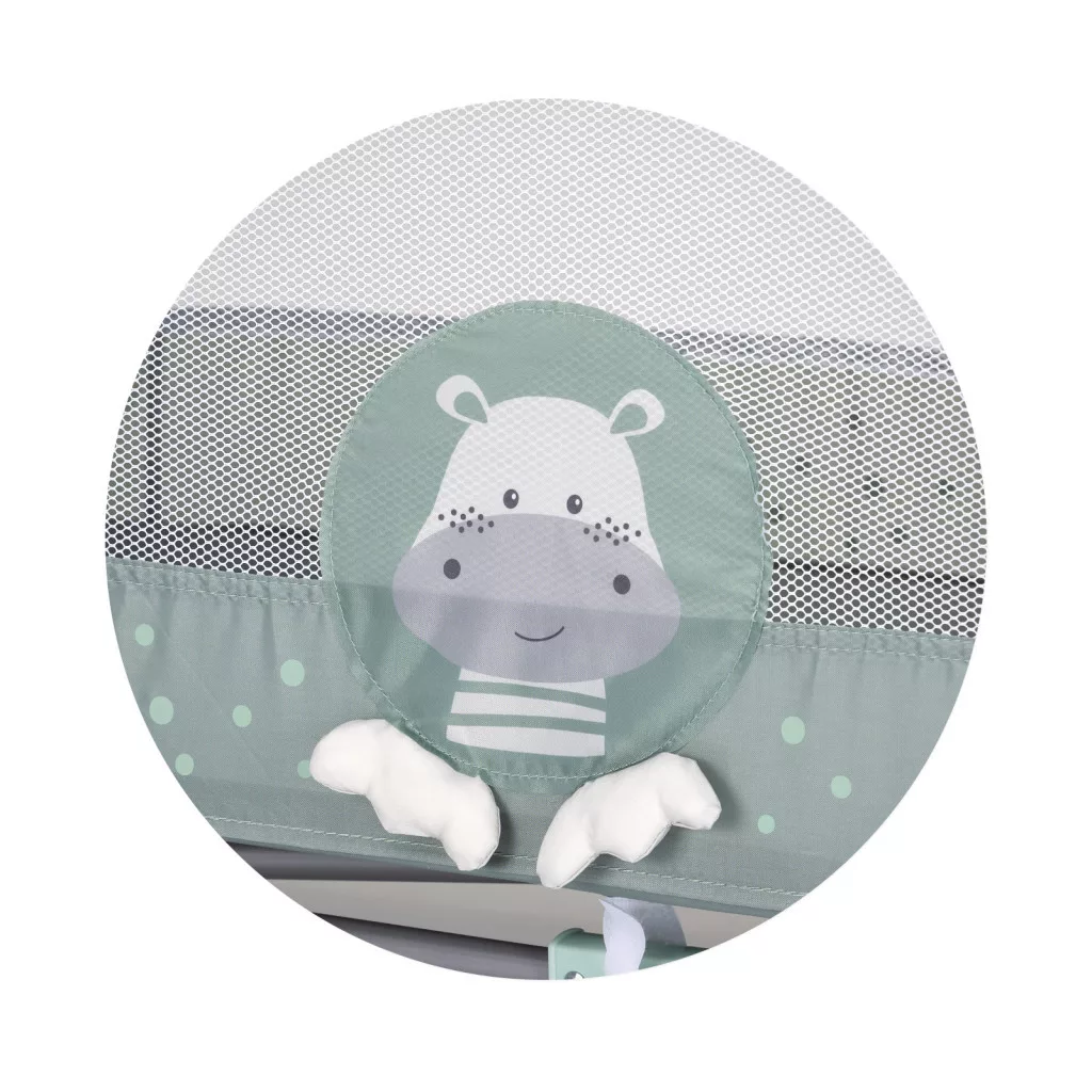 Praktikus és kényelmes utazóágy a kicsiknek, kényelmes matraccal, kellemes színekkel tarkítva.