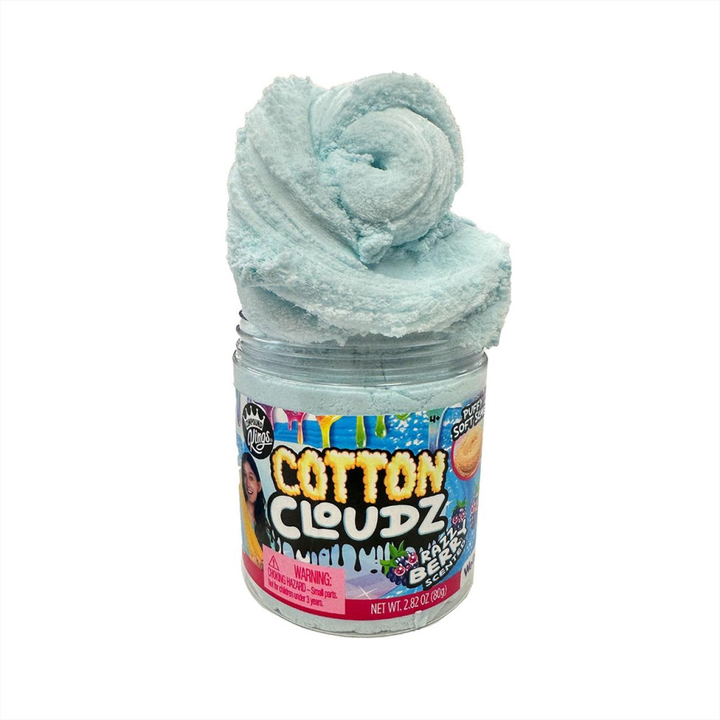 Kék málna illatú izgalmas gyúrható, formázható, csavarható Compound Kings puha vattaslime trendi világoskék színben, 80 grammos tégelyben.