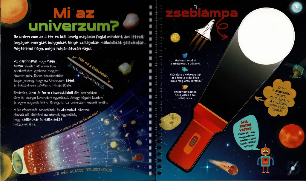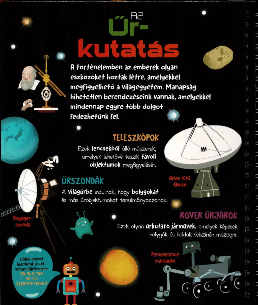 A kötet témája a világűr, amely már önmagában is lenyűgöző: bolygók, csillagok, űrállomások, rakéták, űrhajósok és marsjárók tűnnek fel az oldalakon. A látványos illusztrációk segítségével a gyerekek betekintést nyerhetnek a Naprendszer működésébe, az űrutazás eszközeibe, és még azt is megtudhatják, milyen lehet a Földön kívüli élet lehetősége.