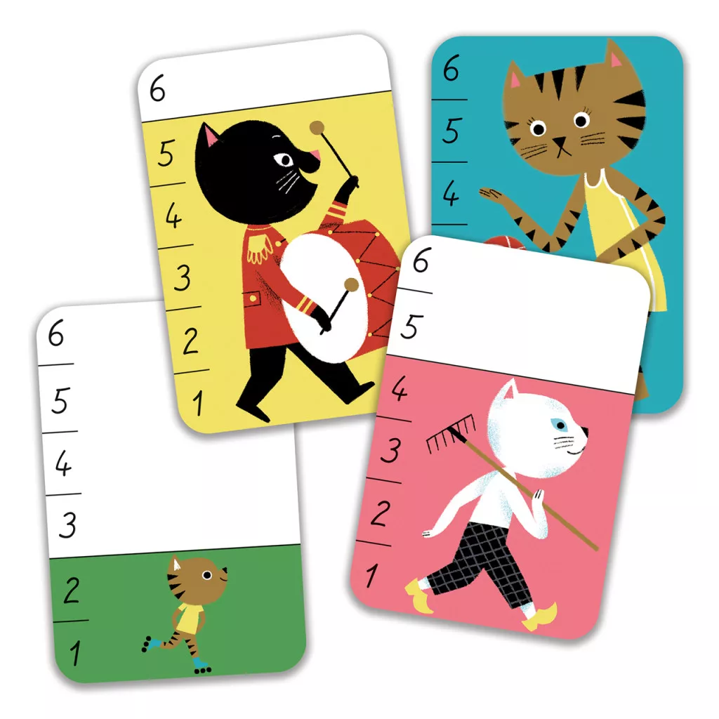 A Több-kevesebb macskás kártyajáték egyszerre tanít és szórakoztat: figyeld a cicák méretét, vond le a következtetéseket, és nyerd meg a lapokat! Kicsiknek a számok és nagyságok érzékeltetését fejleszti, a nagyobbaknak pedig garantált a kacagás a vicces cicás illusztrációkon.