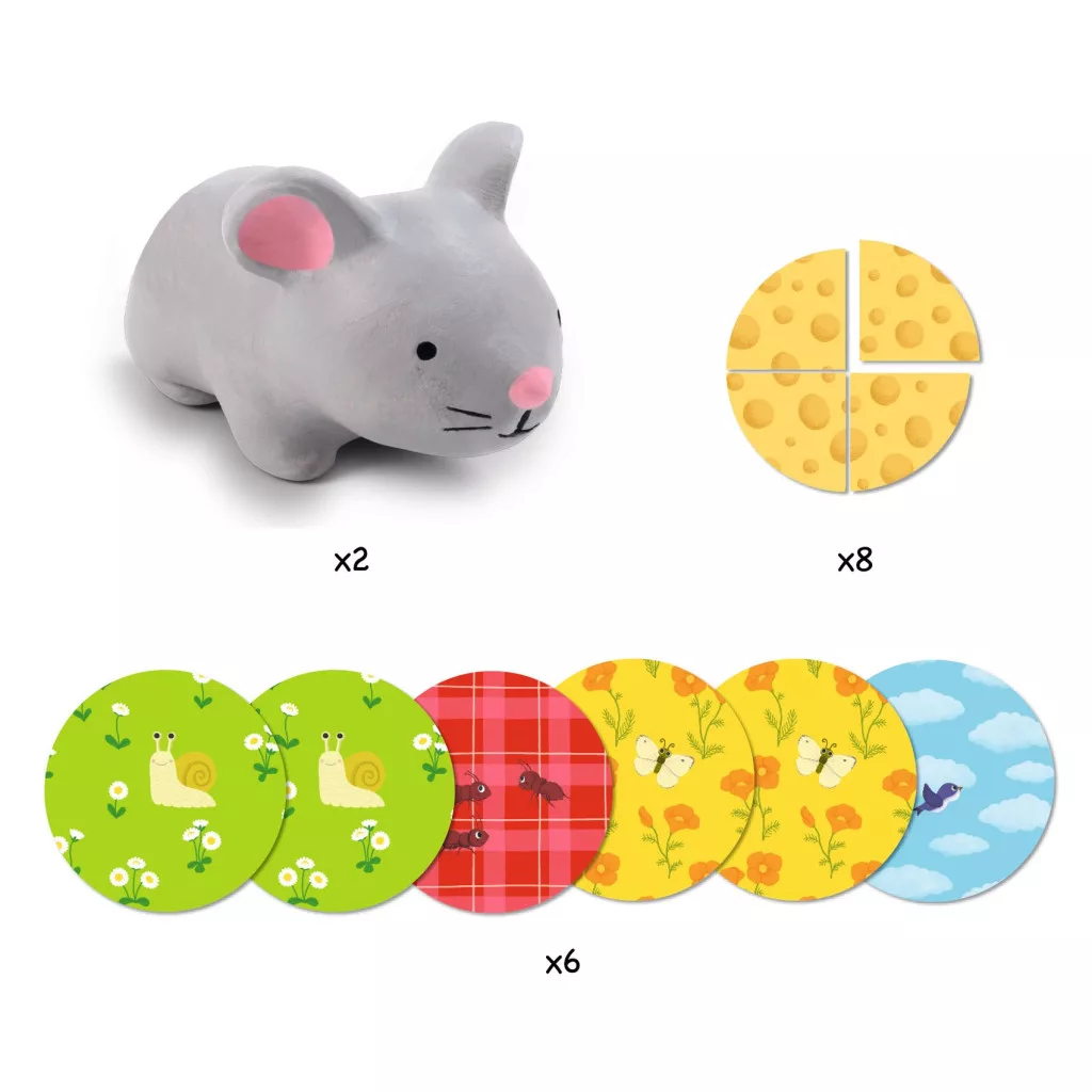 Fordíts, emlékezz, és legyen egy kis szerencséd! Ez az aranyos memóriára és egy kis szerencsére épülő társasjáték tökéletes a kisebbeknek. A mulatságos játékban kisegerek versenyeznek, hogy minél több sajtdarabkát gyűjtsenek össze. Vajon sikerül nekik?