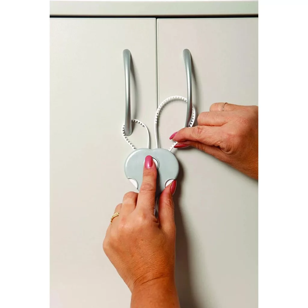 A Dreambaby flexi-lock szekrényzár rugalmas kialakításának köszönhetően többféle gombhoz és fogantyúhoz is illeszkedik, miközben kettős nyitási mechanizmusa miatt a gyerekek számára gyakorlatilag használhatatlan.