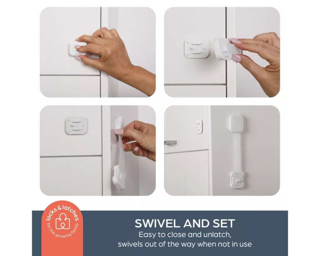Van pár hely otthon, ahova jobb, ha a kicsik nem jutnak be? Ezzel a Dreambaby többfunkciós forgatható zárral gyorsan és egyszerűen megoldhatod. Csak rögzíted, és máris biztonságban tudhatod a szekrényeket, fiókokat vagy akár egyes háztartási eszközöket. Amikor viszont neked van rá szükséged, egy mozdulattal elfordítod, és már nincs is útban.
