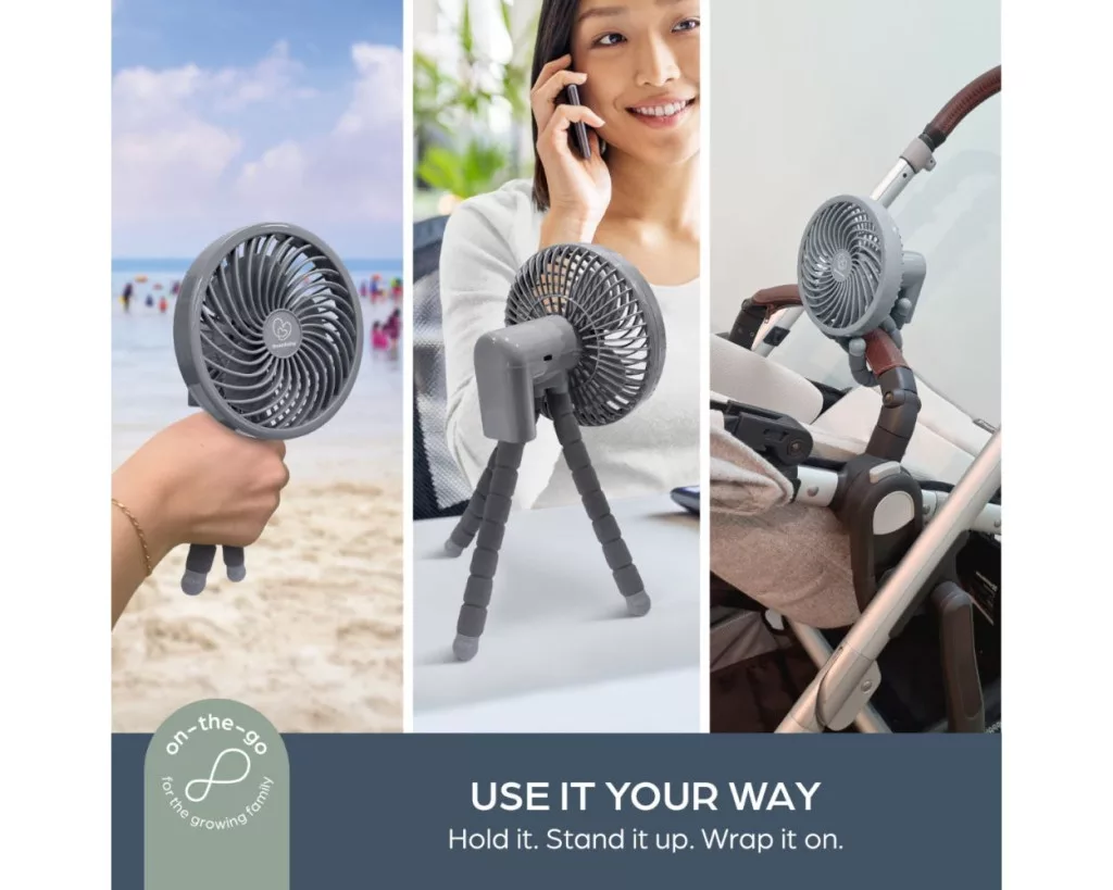 Friss levegő bárhol, bármikor! Ez a praktikus Dreambaby ventilátor kis méretének köszönhetően elfér a táskádban, mégis erős segítség a meleg napokon. Rugalmas lábainak köszönhetően bárhova rögzítheted: babakocsira, biciklire vagy akár az asztalra.