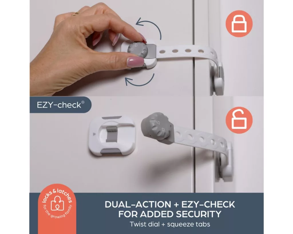A Dreambaby Twist’N Lock többcélú zár rugalmas megoldást ad az otthonod biztonságosabbá tételéhez. Használhatod szekrényeken, hűtőn, WC-n vagy akár üvegfelületeken is – ott véd, ahol szükség van rá.