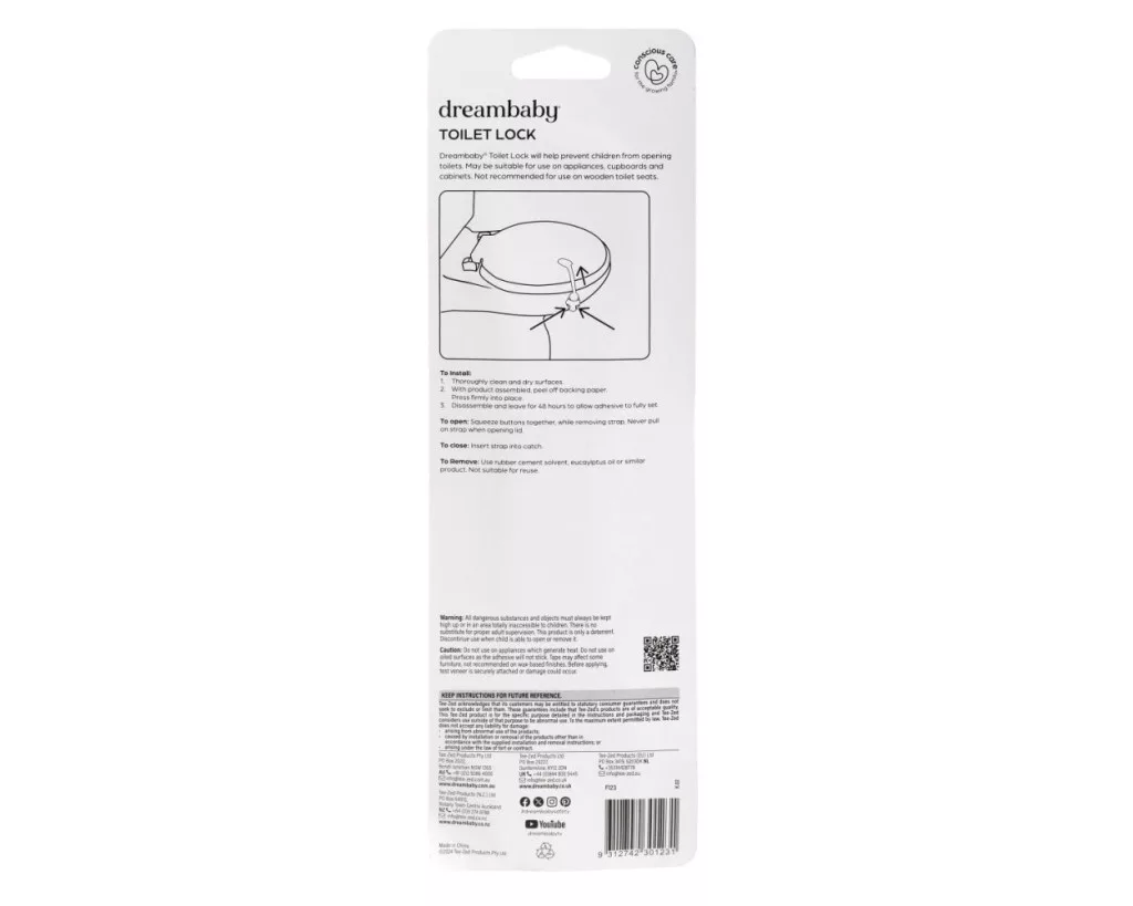 Ez a Dreambaby biztonsági zár segít megakadályozni, hogy a gyerek hozzáférjen a WC-hez, háztartási gépekhez vagy szekrényekhez. Így könnyebben megóvhatod a veszélyes vagy nem kívánt helyzetektől.