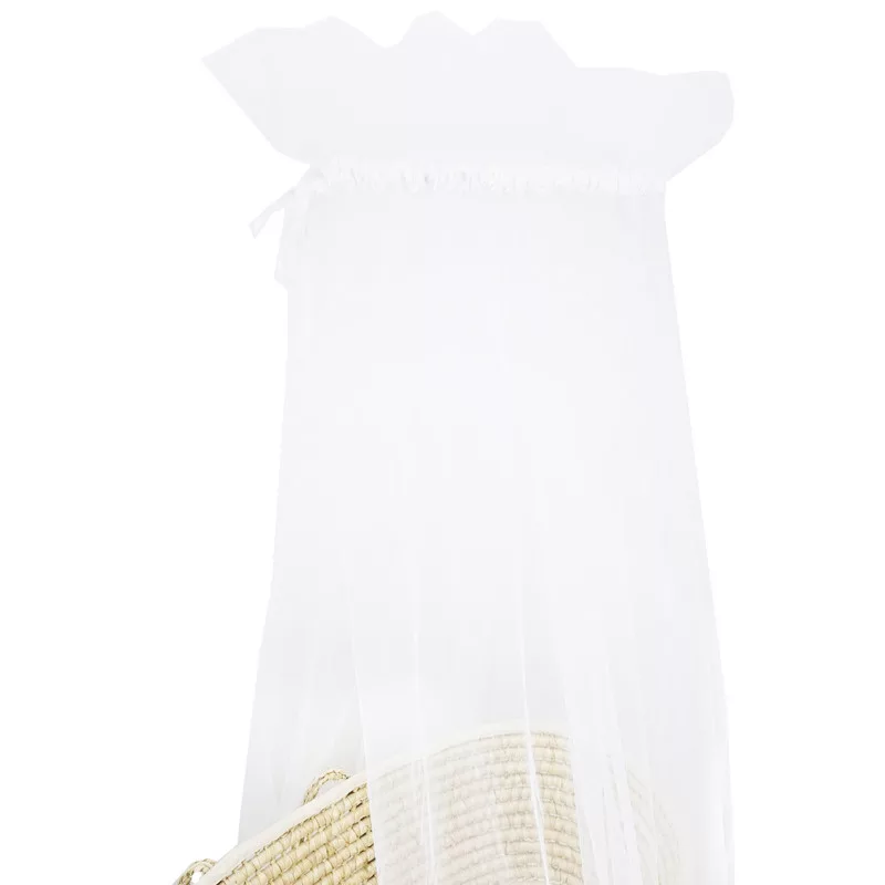 Ez a gyönyörű, áttetsző fehér baldachin stílusos kiegészítője minden babaszobának. Nemcsak esztétikus, de biztonságos kuckót is varázsol a kiságy köré, miközben megóvja a babát a zavaró fényektől és rovaroktól.