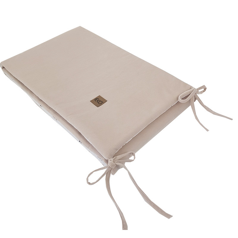 Az EKO kiságyvédő tökéletes választás, ha szeretnél praktikus, mégis dekoratív védelmet a baba kiságyába. A bájos minta játékos és modern hangulatot visz a babaszobába, miközben a puha, hipoallergén töltet óvja a babát a rácsok közötti beütődésektől.