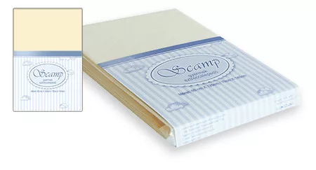 Scamp gumis lepedő babaágyba, vanília színben.100% pamut jerseyMérete: 60×120cm, és 70×140cm-es kiságyba is megfelelő.