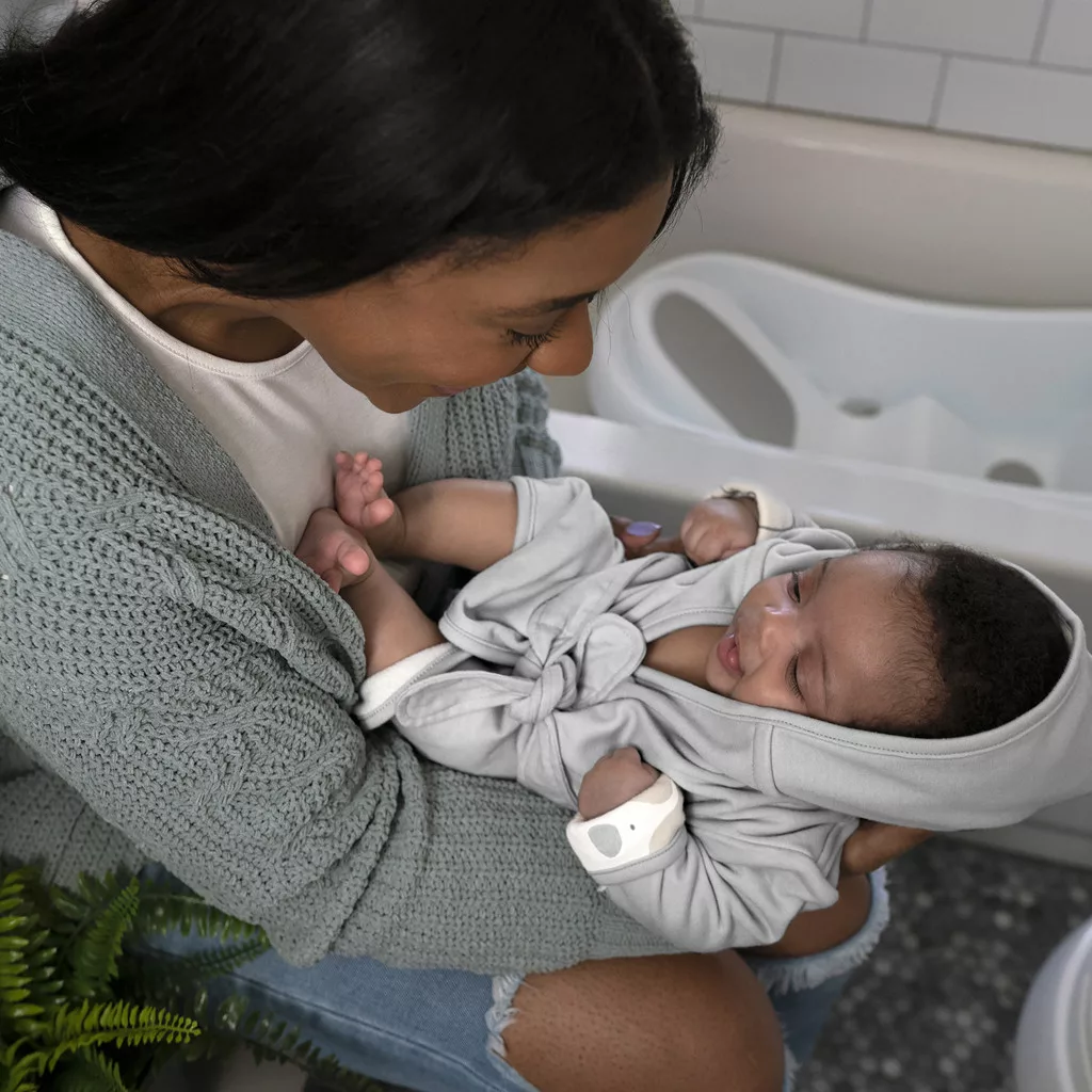 Ehhez a bájos, kapucnis fürdőköpenyhez nincs hasonló – puha, megnyugtató ölelés a fürdés után. A külső pamut és belső frottír réteg gondoskodik arról, hogy a baba kellemesen melegben legyen, a kapucni pedig szárazon tartja a fejét.