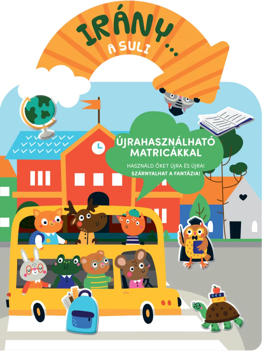 Az Irány… a suli című könyv egy színes, játékos és interaktív matricás könyv, amely segít a kisgyermekeknek megismerkedni az iskolakezdés világával. A könyv célja, hogy izgalmas, jókedvű formában mutassa be a gyerekeknek, milyen lehet egy nap az iskolában, és közben lehetőséget adjon a szabad történetalkotásra.