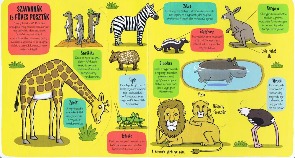 Gyertek kis felfedezők! Utazzunk egyet a világ körül, ismerjük meg együtt, hol milyen állatok élnek. Ha felemeled az ablakokat, még több információt kapsz az otthonaikról, az étrendjükről vagy az életmódjukról.. Rengeteg felfedeznivaló vár!