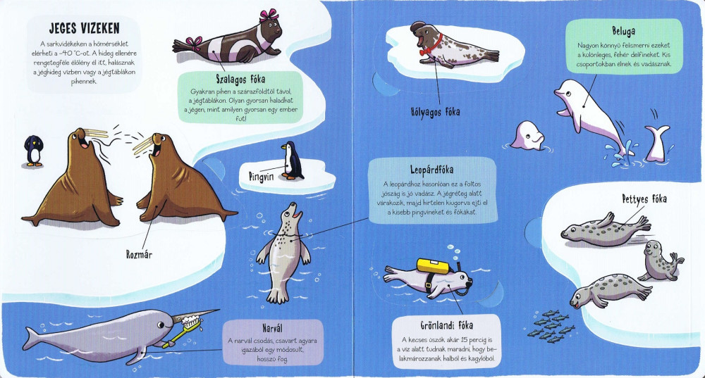 Gyertek, kis felfedezők! Merüljünk alá a tengerek világában, hiszen a hullámok alatt egy csodás világ vár. Az ablakok mögött rengeteg érdekességet találhatsz a vízben élő, rendkívüli élőlényekről. Vegyél mély lélegzetet, mert a rengeteg felfedeznivaló csak rád vár.