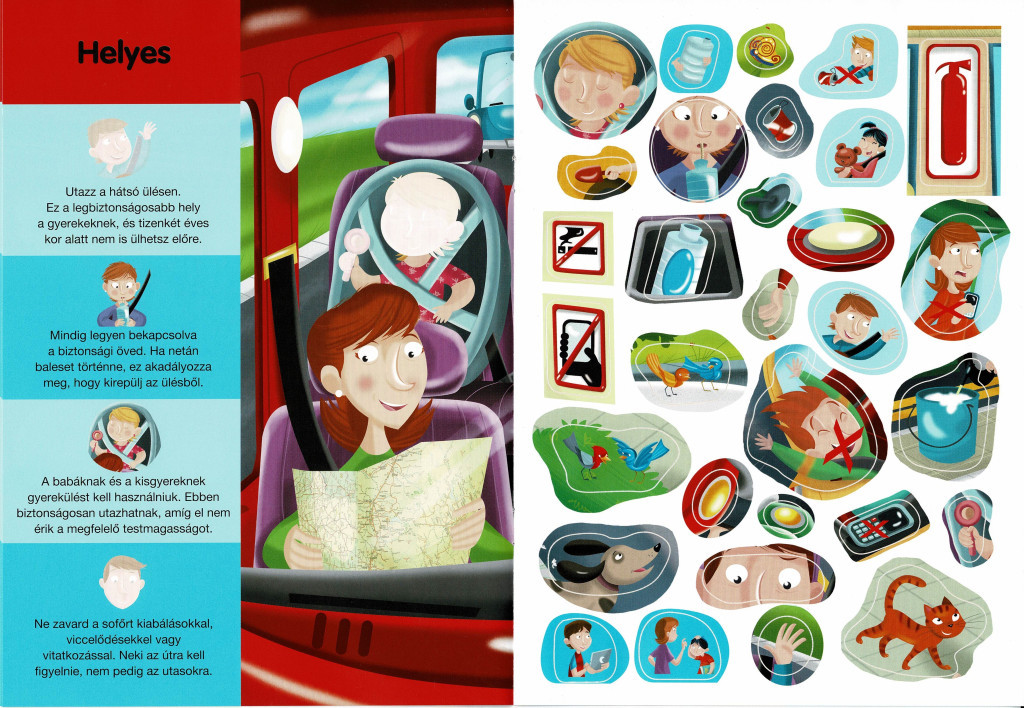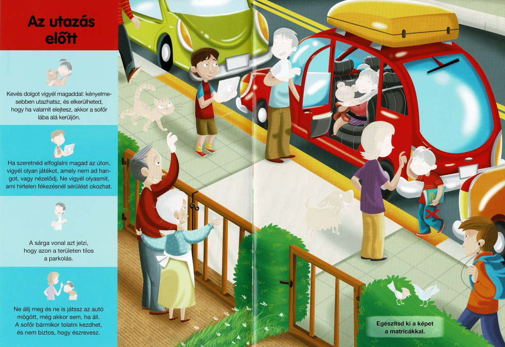 A kiadvány egyik legnagyobb előnye, hogy könnyed, gyermekbarát nyelvezettel dolgozza fel a témát, és a kicsik nyelvén, az ő érdeklődési körükhöz igazítva mutatja be a közlekedés szabályait. A könyvben szereplő matricás feladatok nem csupán a figyelmet és a koncentrációt fejlesztik, de játékos formában ösztönöznek helyes viselkedésre – például arra, hogy az autóban mindig be kell csatolni a biztonsági övet, nem szabad zavarni a sofőrt, vagy hogy miért nem tanácsos kihajolni az ablakon.