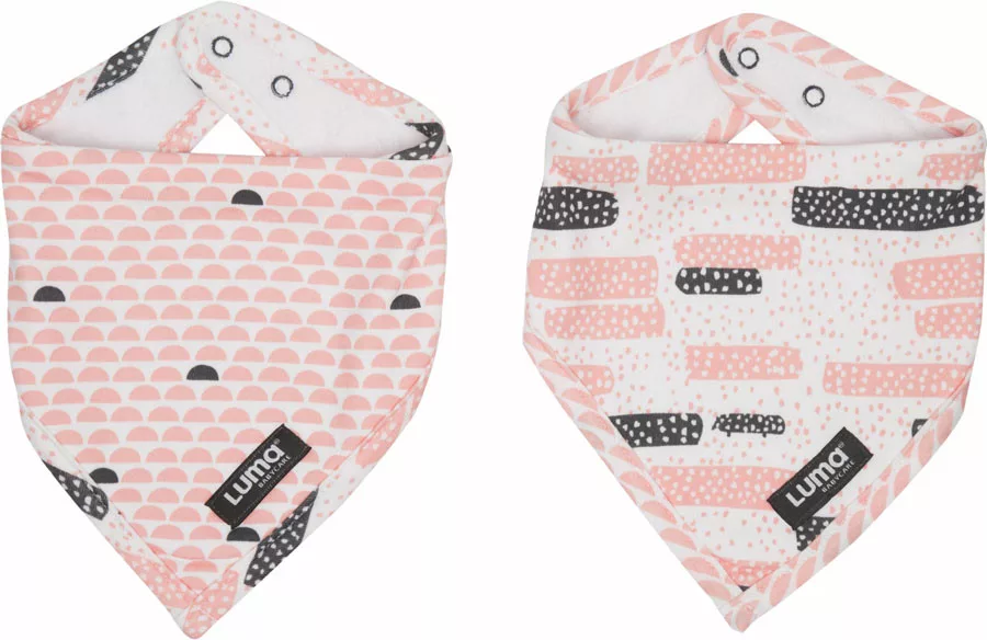 A készlet két divatos nyálfogó kendőt tartalmaz, melyeket gyermeked akár egész nap viselhet. Patent gombokkal rögzítheted, két pozícióban.