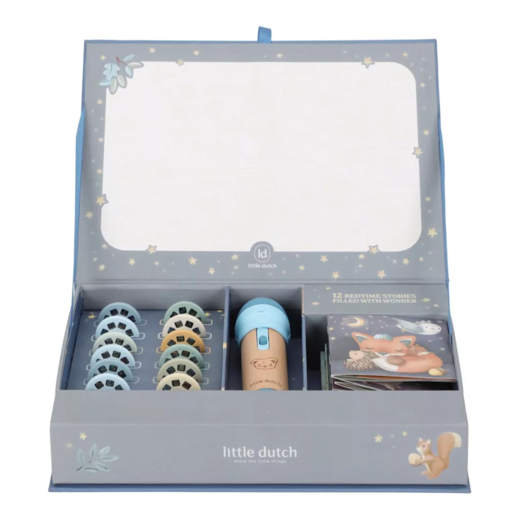 Varázsolj csodás esti meséket a gyerekszobába ezzel a bájos mesevetítővel! Egyszerűen használható és a falra vetíti a kedvenc Little Dutch meséid hangulatát, hogy a kicsik álmai édesek legyenek.