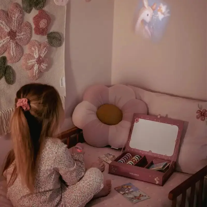 Varázsolj csodás esti meséket a gyerekszobába ezzel a bájos mesevetítővel! Egyszerűen használható és a falra vetíti a kedvenc Little Dutch meséid hangulatát, hogy a kicsik álmai édesek legyenek.