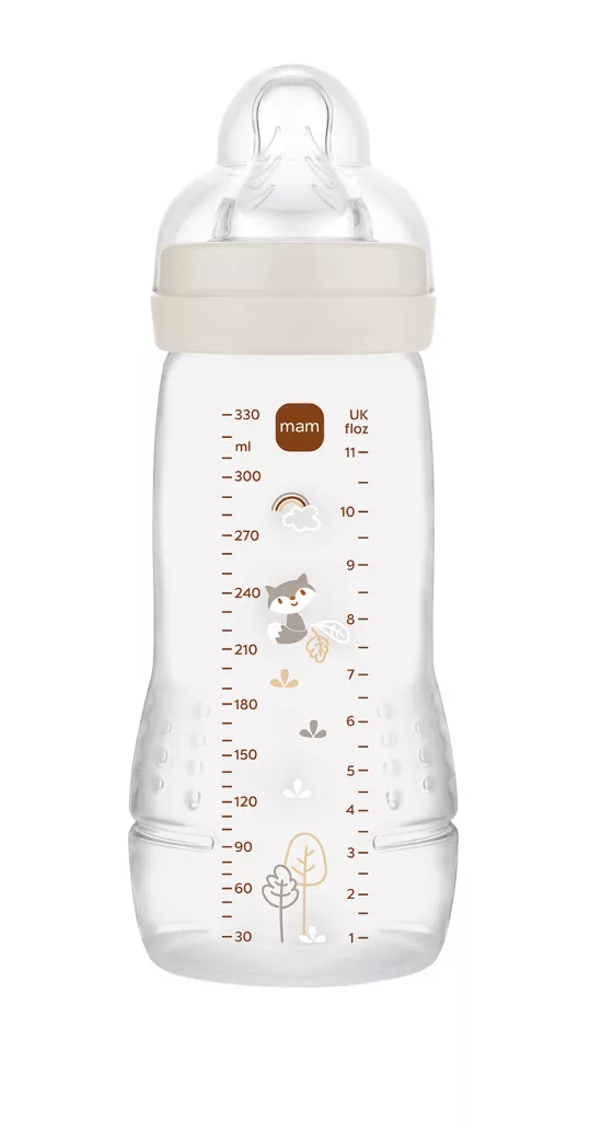 A MAM Easy Active™ cumisüveg ergonomikus formája jól illeszkedik a pici kezekbe, elősegítve a függetlenséget és rugalmasságot az etetés során.