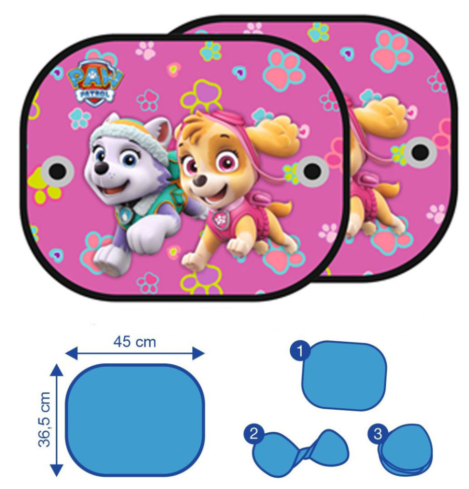 Száguldjatok együtt a nyári napsütésben, de fényzavar nélkül! A Mancs Őrjárat árnyékolók nemcsak szuperül néznek ki, de praktikus védelmet is nyújtanak a kis utasoknak a napsugarak ellen. A két darabos szett könnyedén rögzíthető a hátsó ablakokra tapadókoronggal.