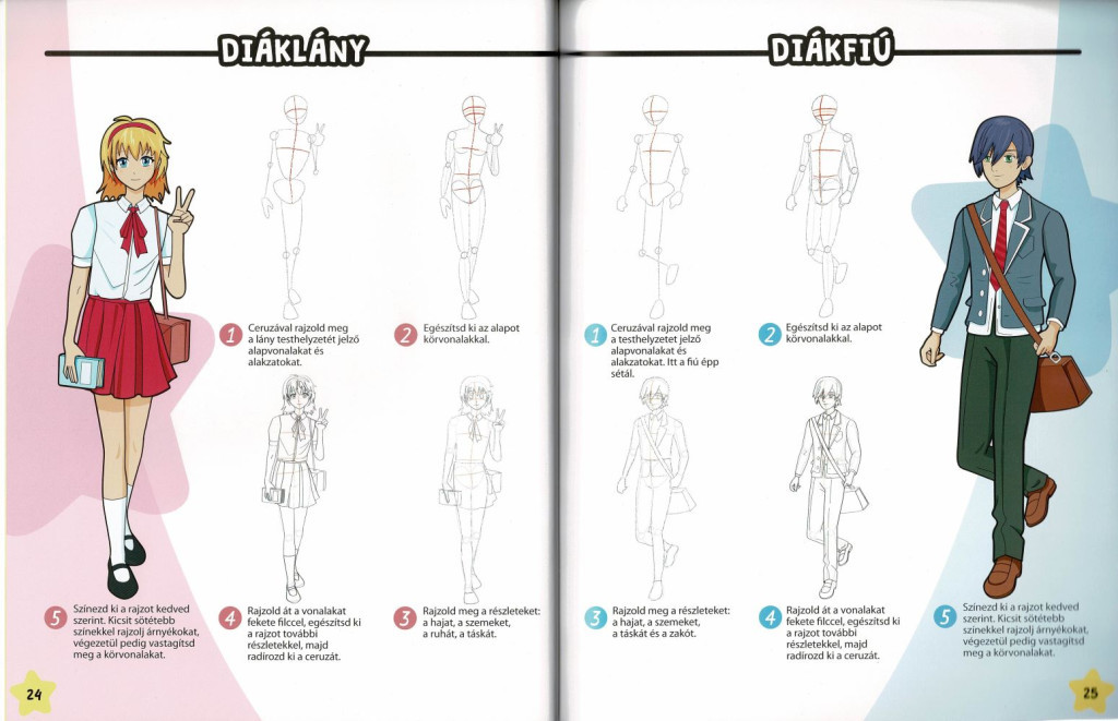 A Manga karakterek sónen és sódzso stílusban könyv egy átfogó útmutató, amely lépésről lépésre vezeti be az olvasókat a manga rajzolás világába. A könyv részletesen bemutatja, hogyan rajzolhatunk meg 45 különböző karaktert a sónen és sódzso stílusokban. Minden karakterhez részletes lépéseket és illusztrációkat nyújt, amelyek segítenek az olvasóknak elsajátítani a manga rajzolás alapjait.