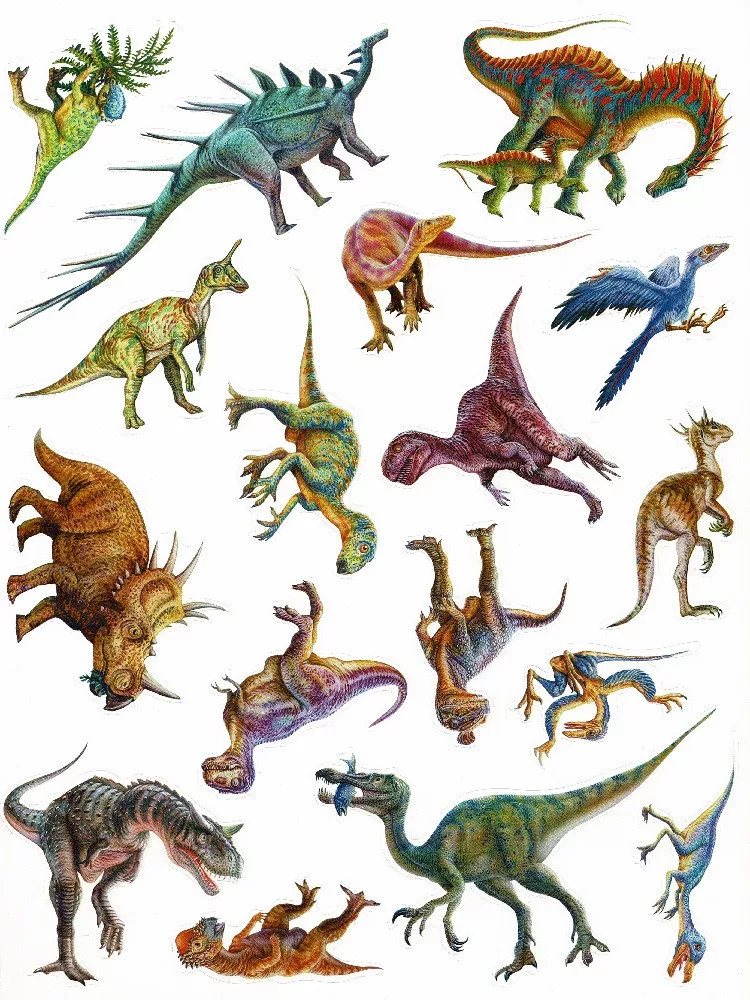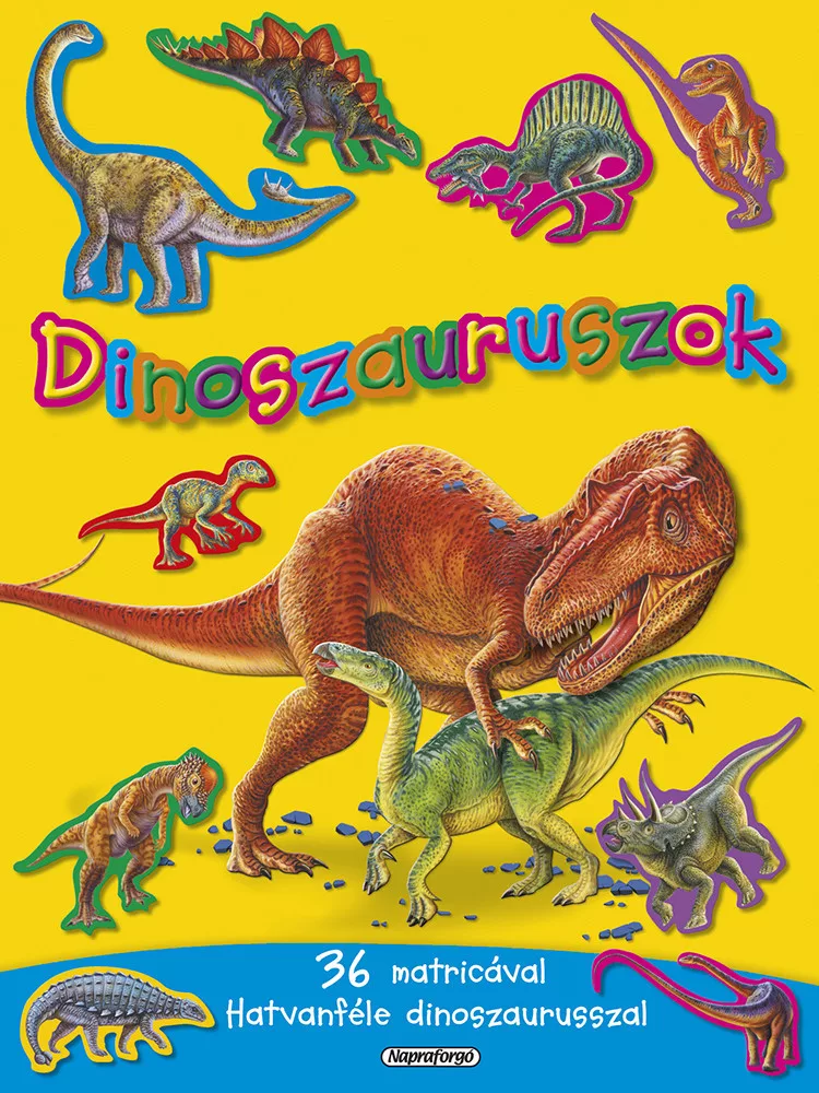 Több millió évvel ezelőtt hatalmas dinoszauruszok jártak bolygónk tájain. Ezek a hüllők a triász, a jura és a kréta időszakban éltek a Földön. Rengeteg különféle dinoszauruszt találtak már, és még mindig nem értek véget a kutatások. Az apró dinóktól kezdve egészen a ház nagyságúakig több mint hatvanféle állatot találhatsz meg a matricásfüzet oldalain. Ragaszd be őket, és tudj meg minél többet ezekről a 64 millió évvel ezelőtt kihalt lényekről.