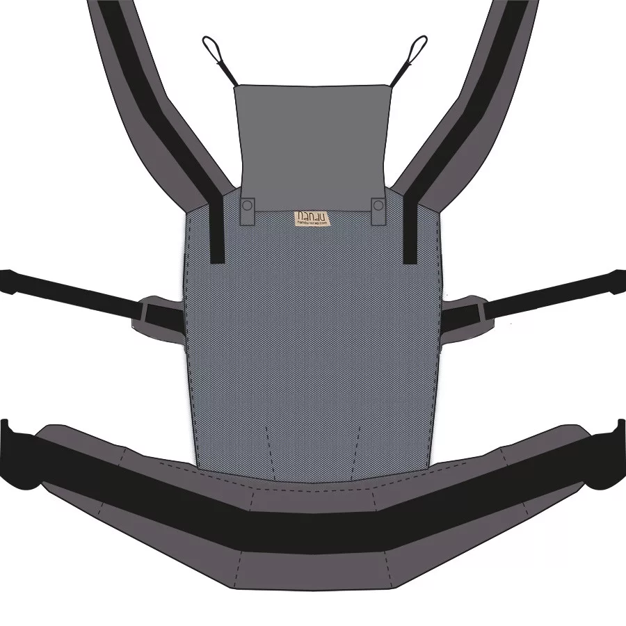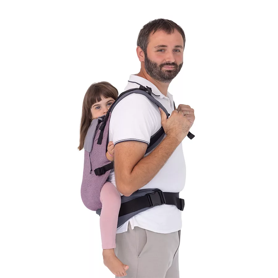 A hordozó ergonomikus kialakítása biztosítja a baba helyes testtartását, miközben a szülőnek is kényelmes, jól elosztott terhelést nyújt – akár hosszabb séták során is.