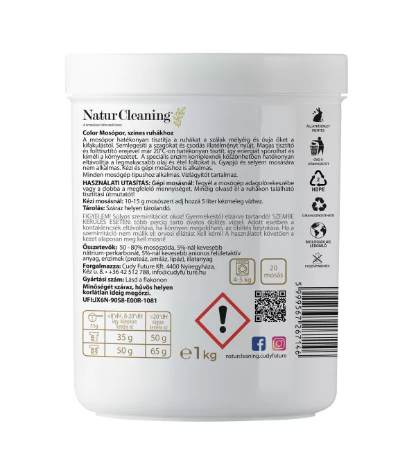 • Kiszerelés: 1 kg (kb. 20 mosáshoz)