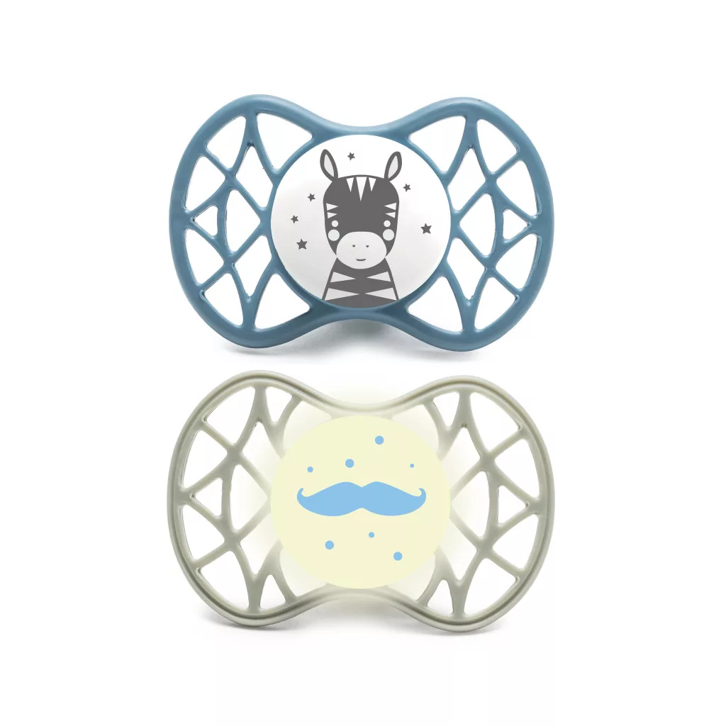 Nuvita Orthosoft Air55 2db-os cumi szett 6+ - Powder Blue/Sage Green - zebra/bajusz 70842