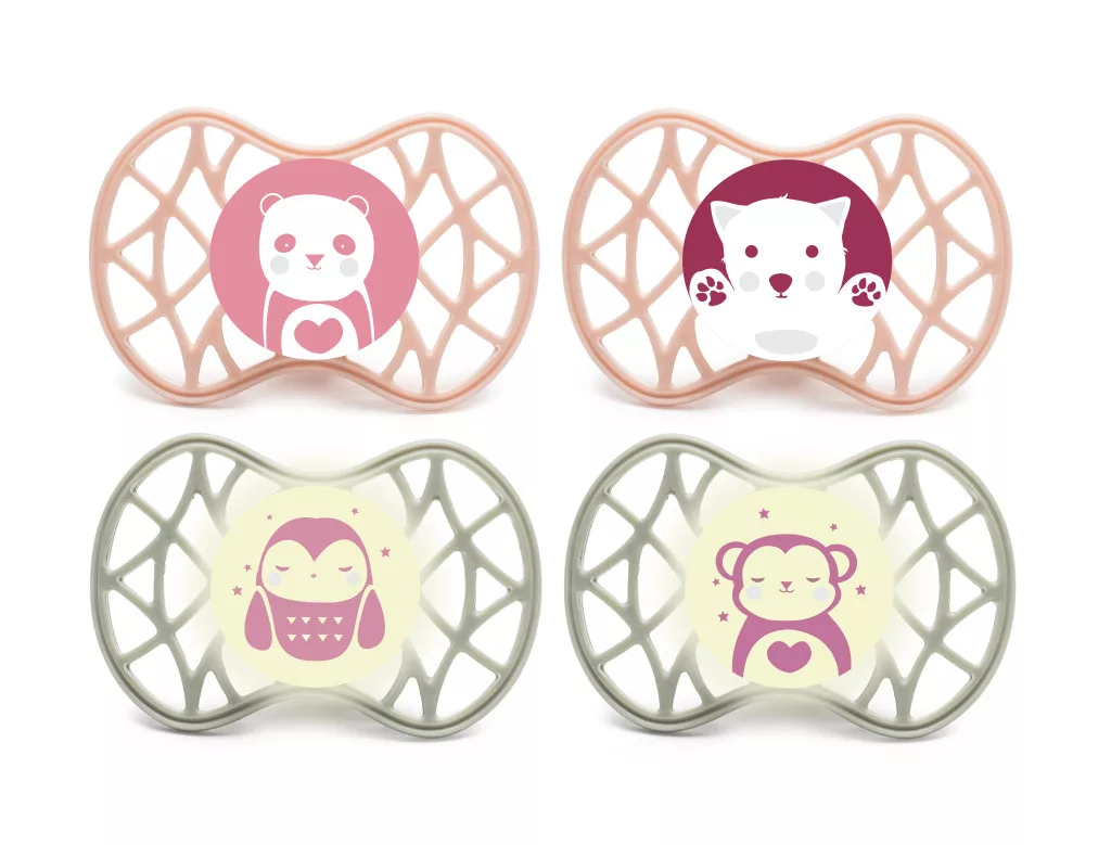 • Szimmetrikus cumi, amely elősegíti a száj megfelelő fejlődését és biztosítja a nyelv helyes elhelyezkedését, csökkentve a fogak elmozdulásának és a szájpadlás károsodásának kockázatát.