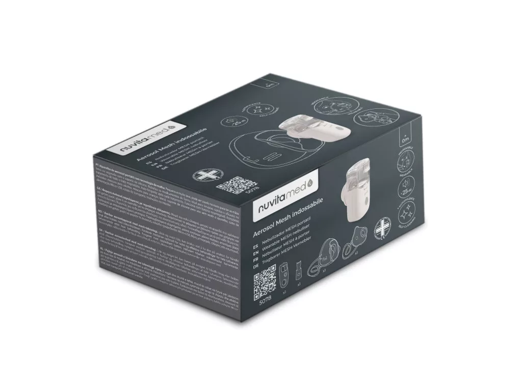 - MESH technológia: Rozsdamentes acél hálós lemez, amely garantálja a gyógyszerek jobb porlasztását, valamint gyors és szuper csendes terápiát biztosít, amely még a gyerekek számára is kellemes.