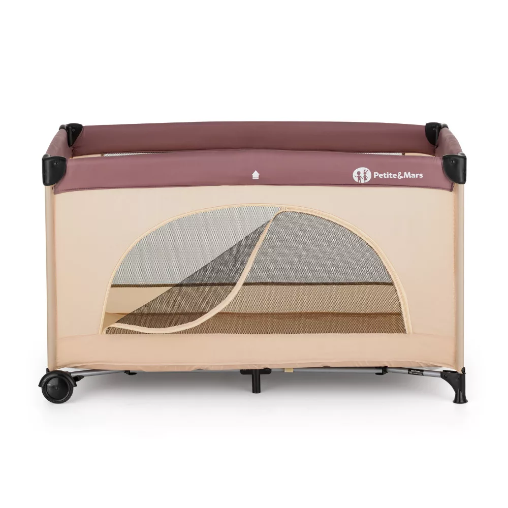 - A kiságy egyik hálós oldala lecipzározható, hogy a baba kényelmesen ki- és bemászhasson a kiságyba.
