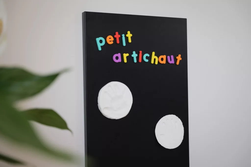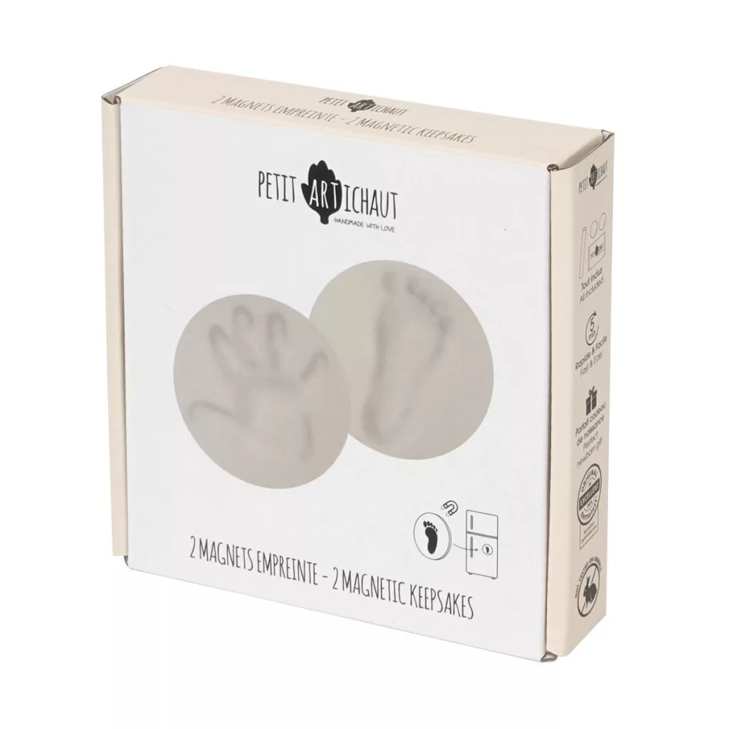 A Petit Artichaut mágneses kéz- és lábnyomat készítő segítségével megőrizheted babád apró kéz- vagy láblenyomatát mini mágnes formában, amelyet bárhová felhelyezhetsz – a hűtőre, irodai táblára vagy bármilyen fémfelületre.