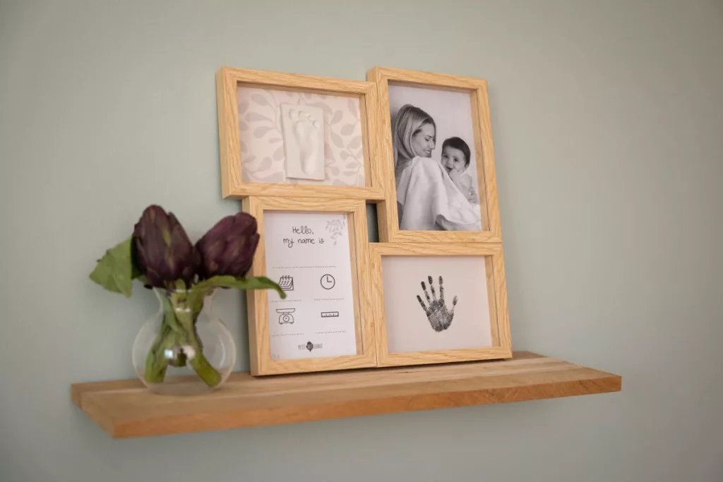 Ezen a puzzle kereten a baba fényképét ill. agyaggal és tintával készült lenyomatait jelenítheti meg.