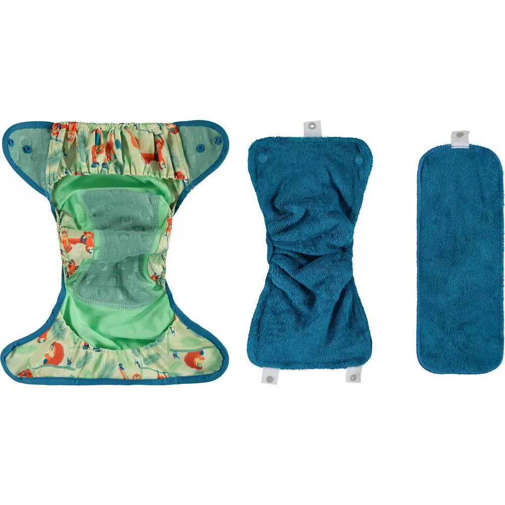 **A termék egy darab egyméretes pelenkát és egy hozzá tartozó bambusz nedvszívó betétet tartalmaz.