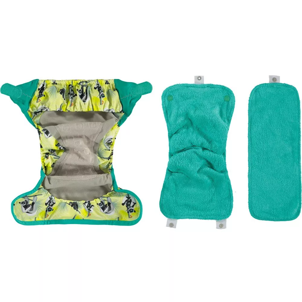 **A termék egy darab egyméretes pelenkát és egy hozzá tartozó bambusz nedvszívó betétet tartalmaz.