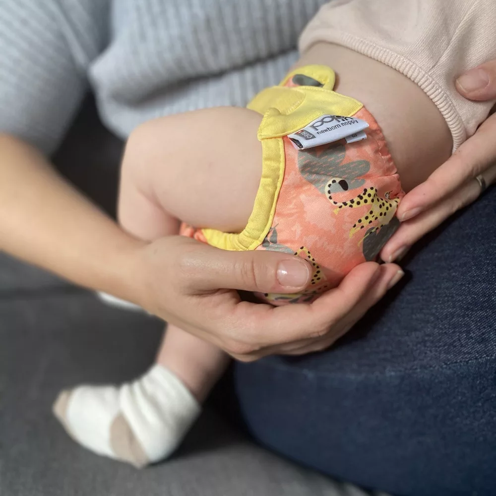 A pelenka elülső része nagyon szépen illeszkedik a pici babákra, szabadon hagyva a köldökrészt. A pelenka sokkal karcsúbb, mint az egyméretes modellek. Alkalmazkodva az újszülött igényeihez kevesebb nedvességet szív fel és valamivel gyakrabban kell cserélni. A külső, vízálló réteg nincs bélelve, így a belső eltávolítása után egyszerűen tisztára törölheted és újra felhasználhatod, ha nem szennyezett.