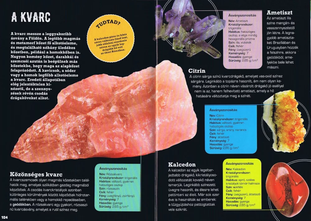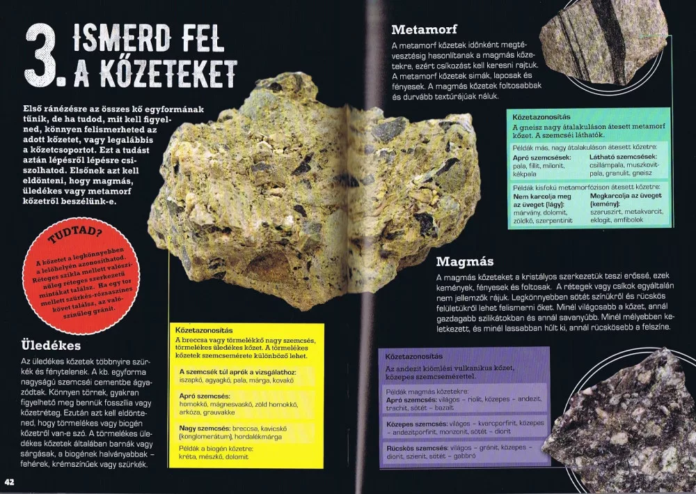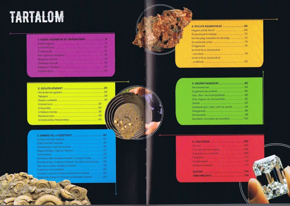 Kirándulni jó! Hiszen a friss levegő és a mozgás mellett olyan csodákra is akadhatunk a túrázás során, mint amilyenek a kőzetek, az ásványok, sőt, szerencsés esetben akár drágakövet is találhatunk. Az ásványvadászok élete tele van meglepetésekkel, hiszen még a legunalmasabb kavicsnak is évmilliókra visszanyúló története lehet... Ez a könyv abban segít, hogy az olvasó kiismerhesse magát a kőzetek, az ásványok és a drágakövek lenyűgöző birodalmában.