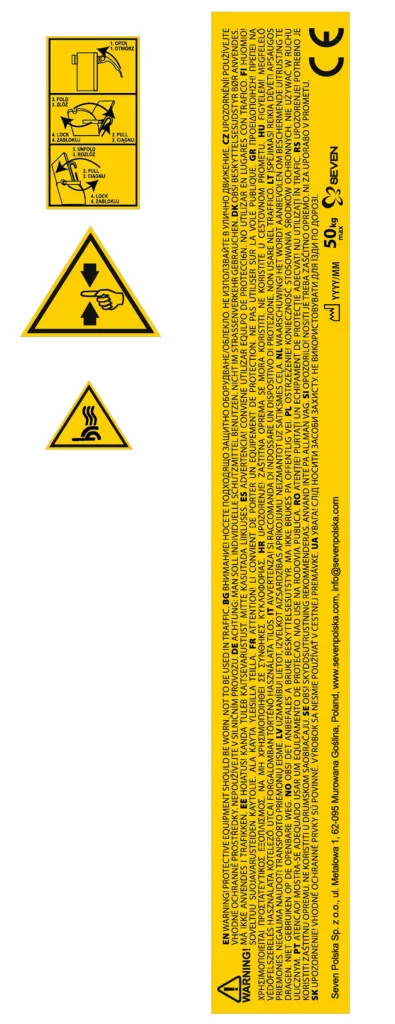 FIGYELMEZTETÉS! VÉDŐFELSZERELÉST KELL VISELNI. KÖZLEKEDÉS SORÁN TILOS HASZNÁLNI.
