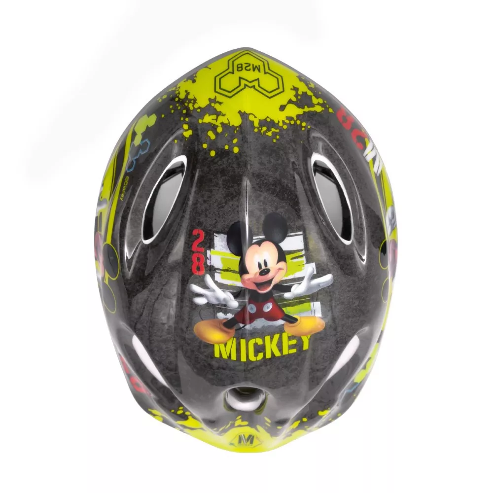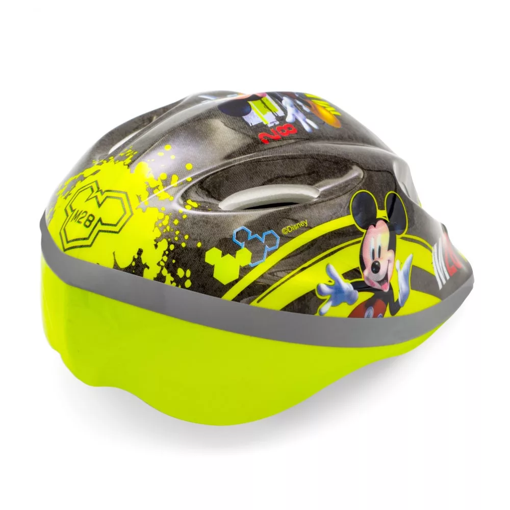 A sisak viselete gyerekeknek ajánlott kerékpározáshoz, görkorcsolyához, rollerezéshez stb. A sisak külső része PVC-ből készült és Mickey egér figurákkal díszített, a belső része pedig ütéscsillapító EPS habból. A sisak állító gombbal van felszerelve, hogy a baba fejéhez igazítsa, mindkét oldalon pántok találhatók, amelyek az áll alatt, puha betéttel ellátott csattal vannak rögzítve. A sisak héjában szellőzőnyílások találhatók.