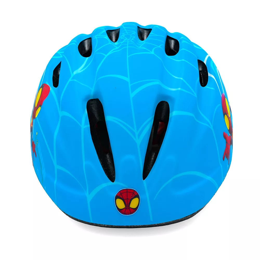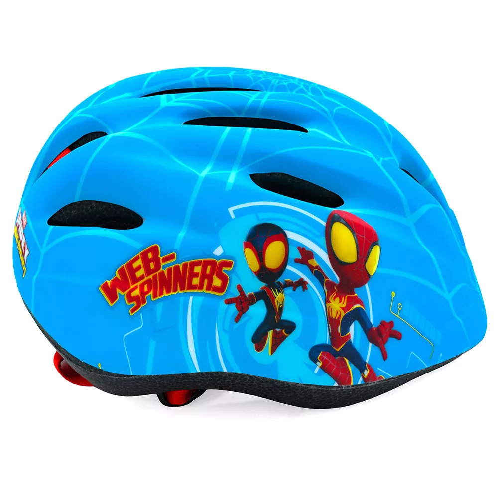 Biztonságos, kiváló minőségű sisak a legfiatalabb motorosok számára. Jól illeszkedik a gyermek kerékpározás és más járművek vezetésére való tanításához. Kényelmes viseletet biztosít, amikor a gyermek kosárülésben utazik a kerékpáron. A sisak külső része matt PVC-ből készült, és a SPIDEY karaktereivel díszített. A belső része ütéscsillapító fekete EPS habból készült. A sisak állító gombbal van felszerelve, hogy a sisakot a baba fejéhez lehessen állítani, mindkét oldalon pántok vannak az áll alatt, puha betéttel ellátott csattal rögzítve. A sisak héjában 12 szellőzőnyílás található.